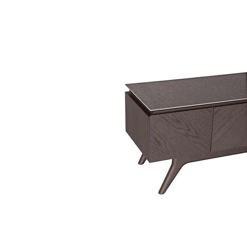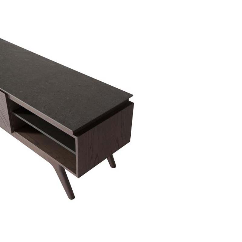 Έπιπλο tv με σώμα καπλαμά ξύλου ή λάκα, με κεραμικό maxfine στην επιφάνεια του και βάση μασίφ ξύλο.