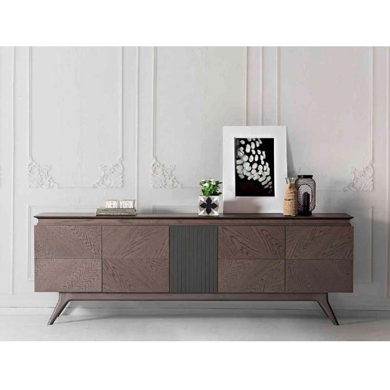 Sideboard in veneer wood with ceramic maxfine top and base in solid wood.