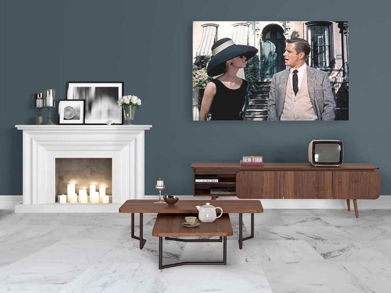 Έπιπλο tv με σώμα καπλαμά ξύλου ή λάκα και βάση μασίφ ξύλο.