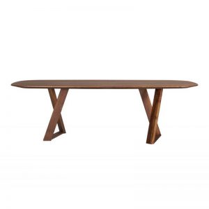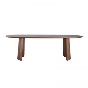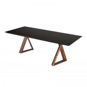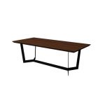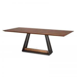 Table with rectangular thin edge top in veneer wood or lacquer or solid wood and metal base.