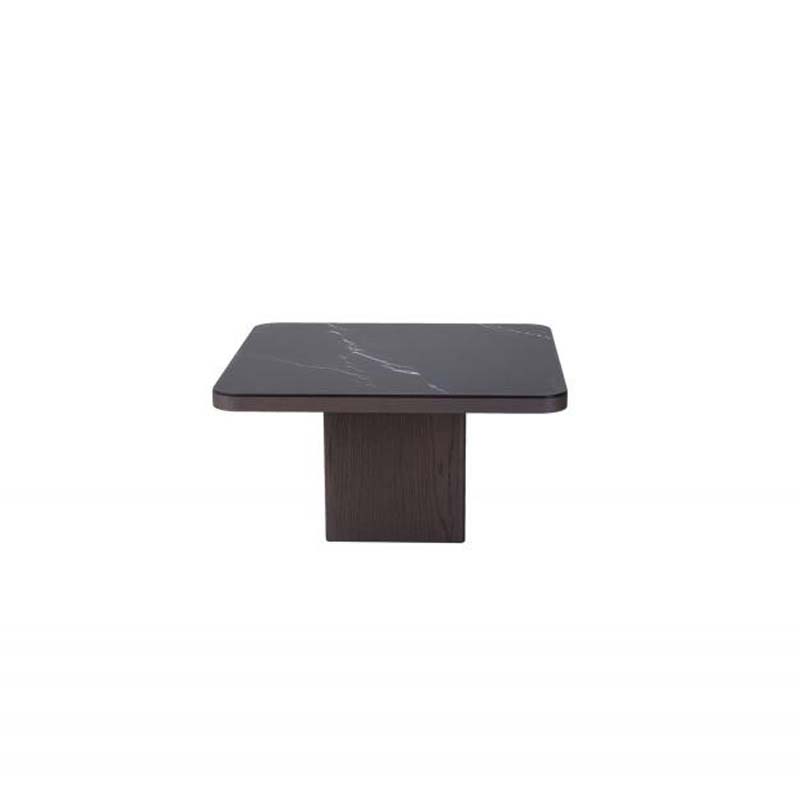 Coffee table with ceramic maxfine top in veneer wood or lacquer and base in veneer wood or lacquer.