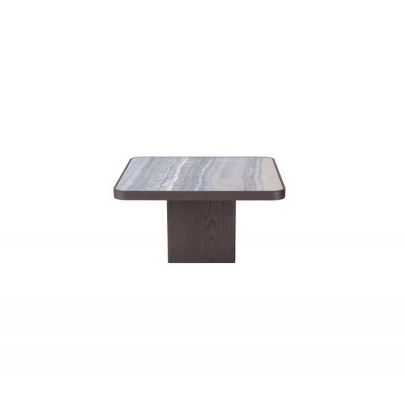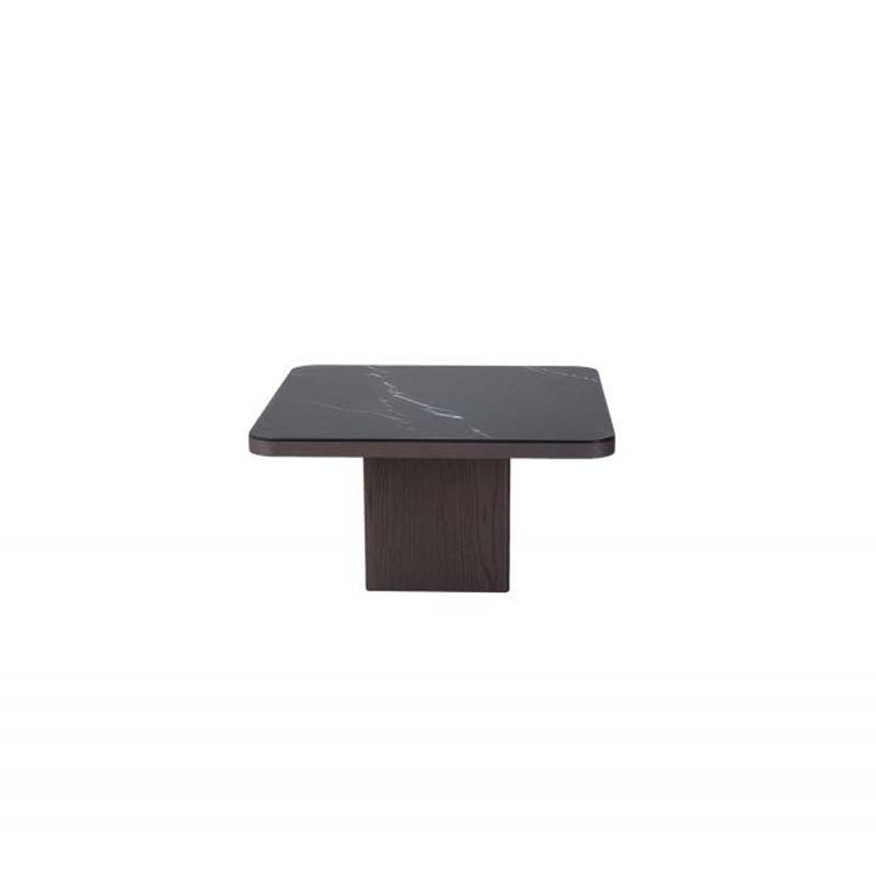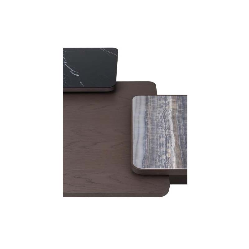 Coffee table with ceramic maxfine top in veneer wood or lacquer and base in veneer wood or lacquer.