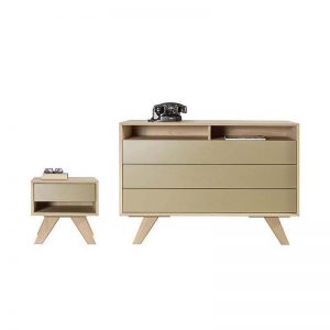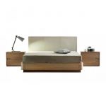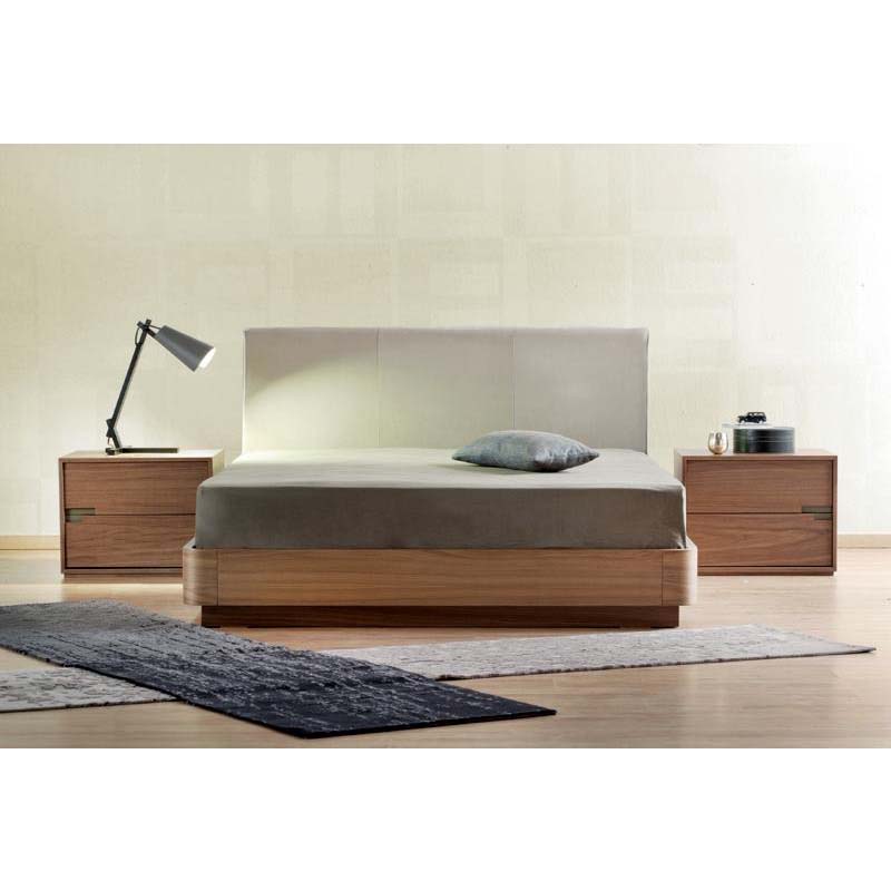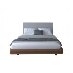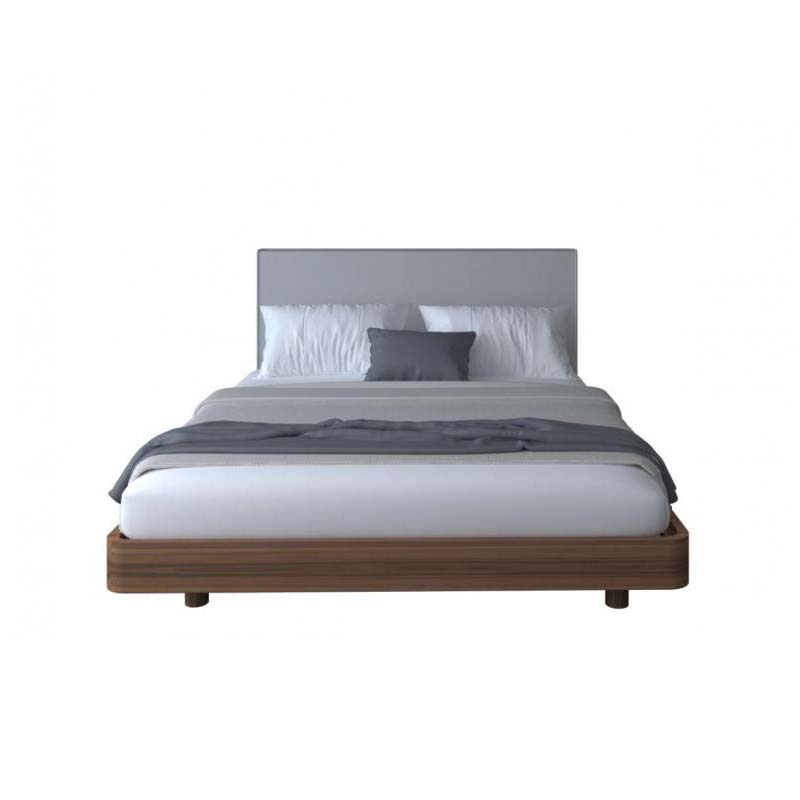 Bed with upholstery headboard and veneer wood or lacquer base.