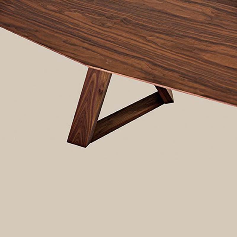 Table with rectangular top in veneer wood or lacquer or solid wood and base in solid wood.