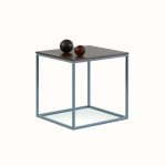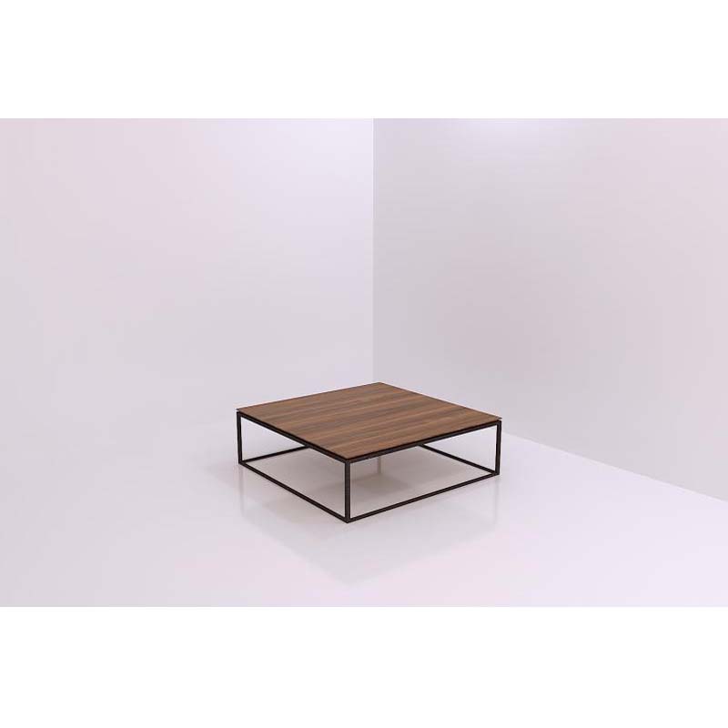 Coffee table with top in 17mm in veneer wood or lacquer and metal base.