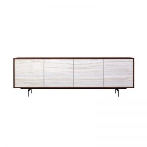 Sideboard in veneer wood with ceramic maxfine top and base in solid wood.