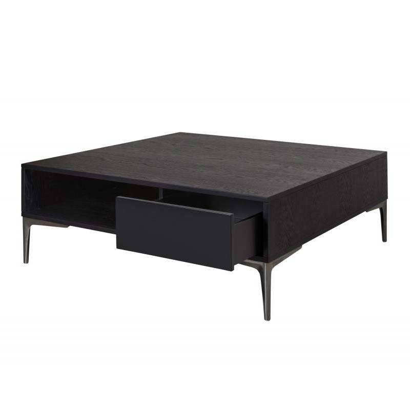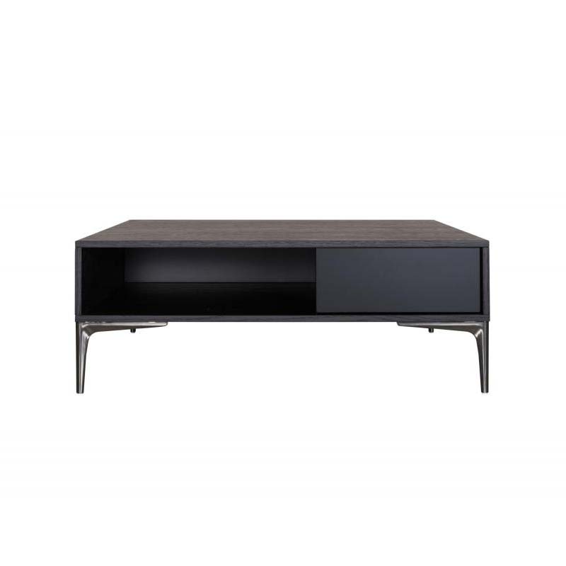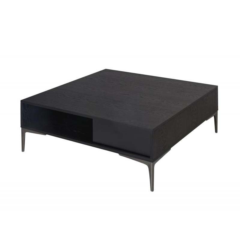 Coffee table in veneer wood or lacquer and base with 4 metal legs in black chrome.