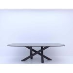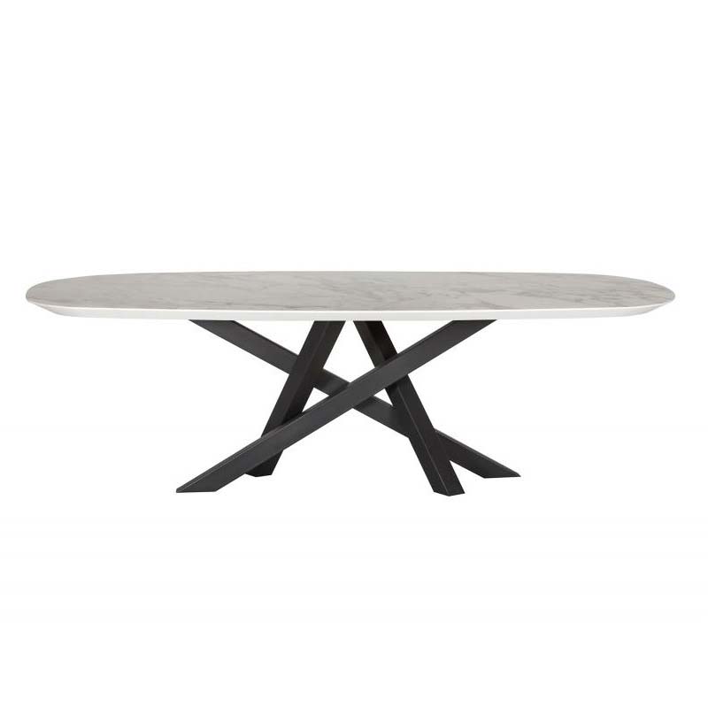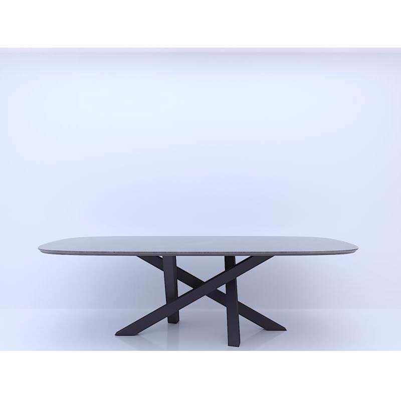 Table with oval thin edge top in ceramic maxfine and metal base .