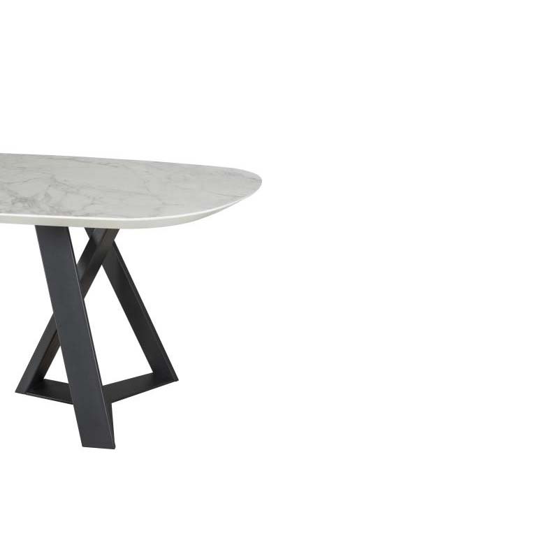 Τραπέζι με οβάλ φάλτσο καπάκι από κεραμικό maxfine και μεταλλική βάση.