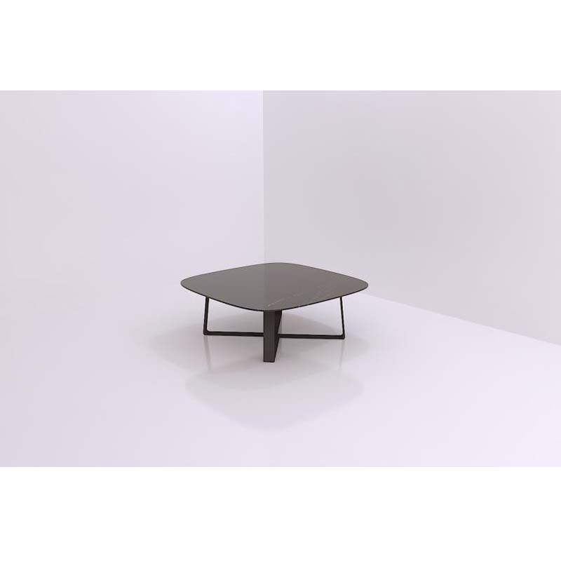 Τραπεζάκι σαλονιού με καπάκι κεραμικό maxfine και βάση μεταλλική.