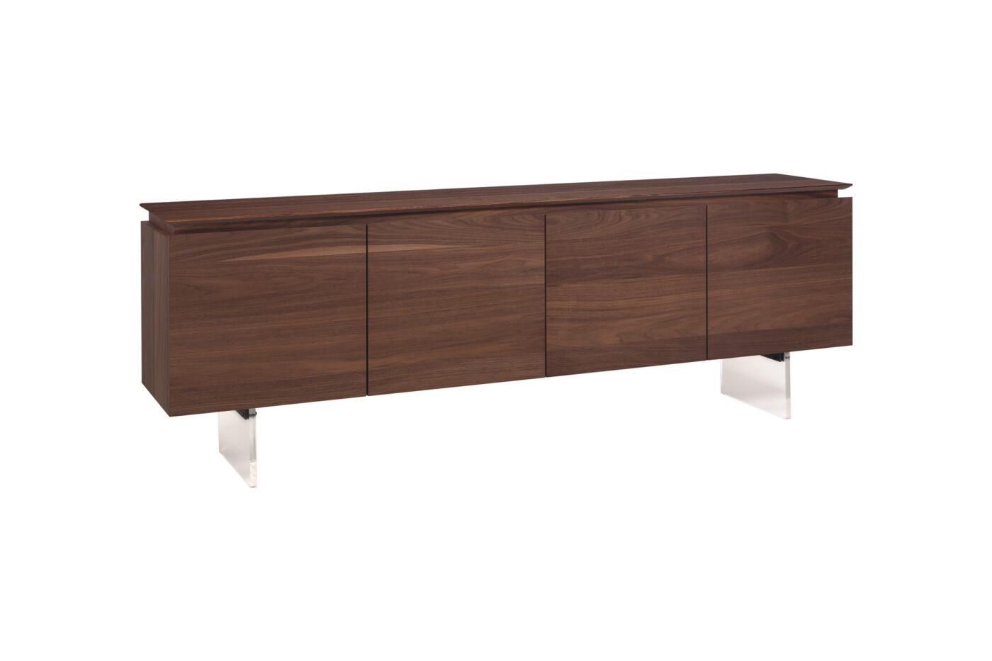 Μπουφές με σώμα καπλαμά ή λάκα και βάση plexi glass . Περιλαμβάνει 4 πόρτες .