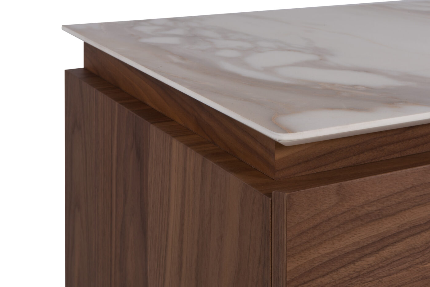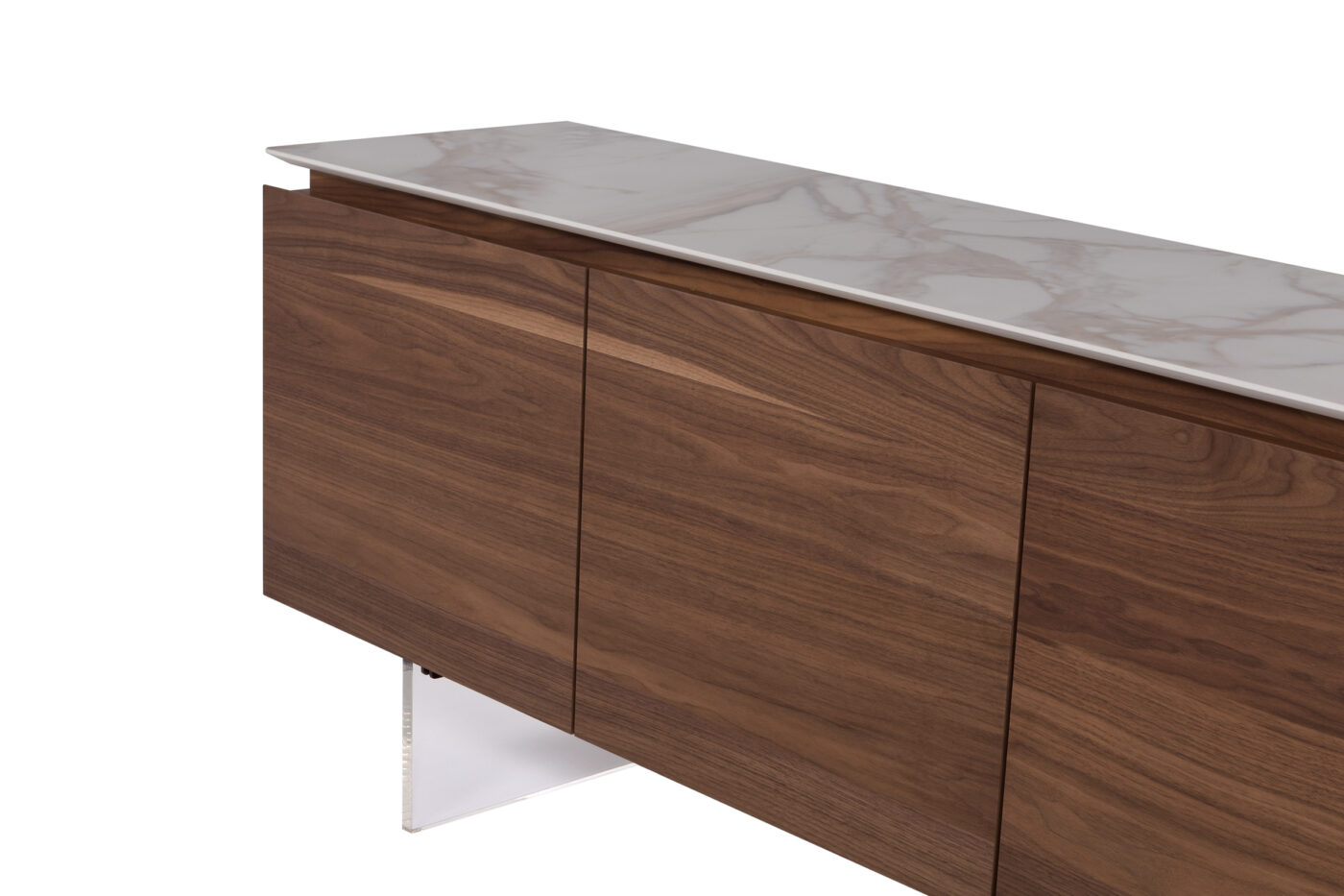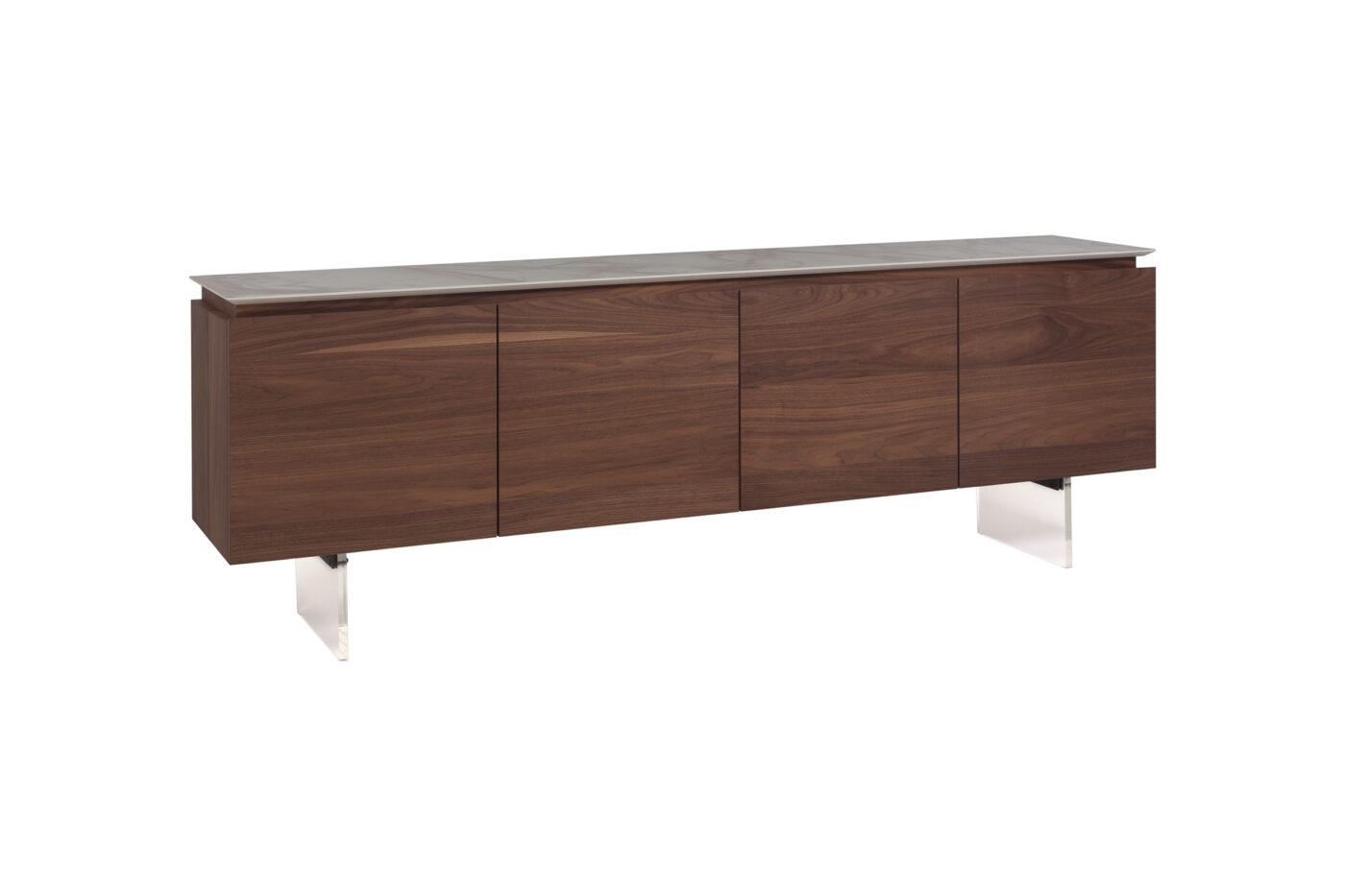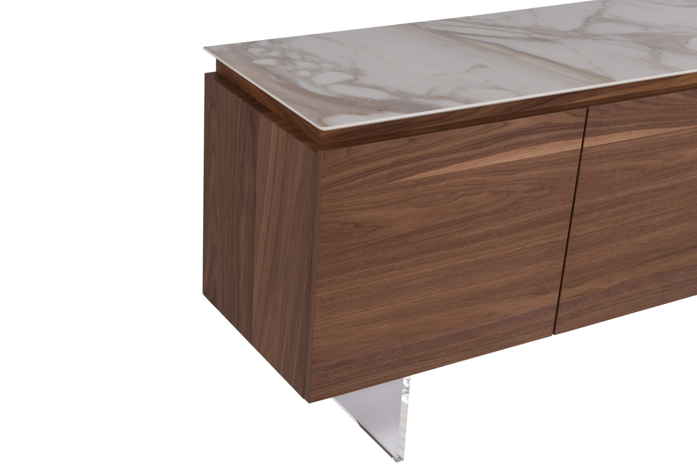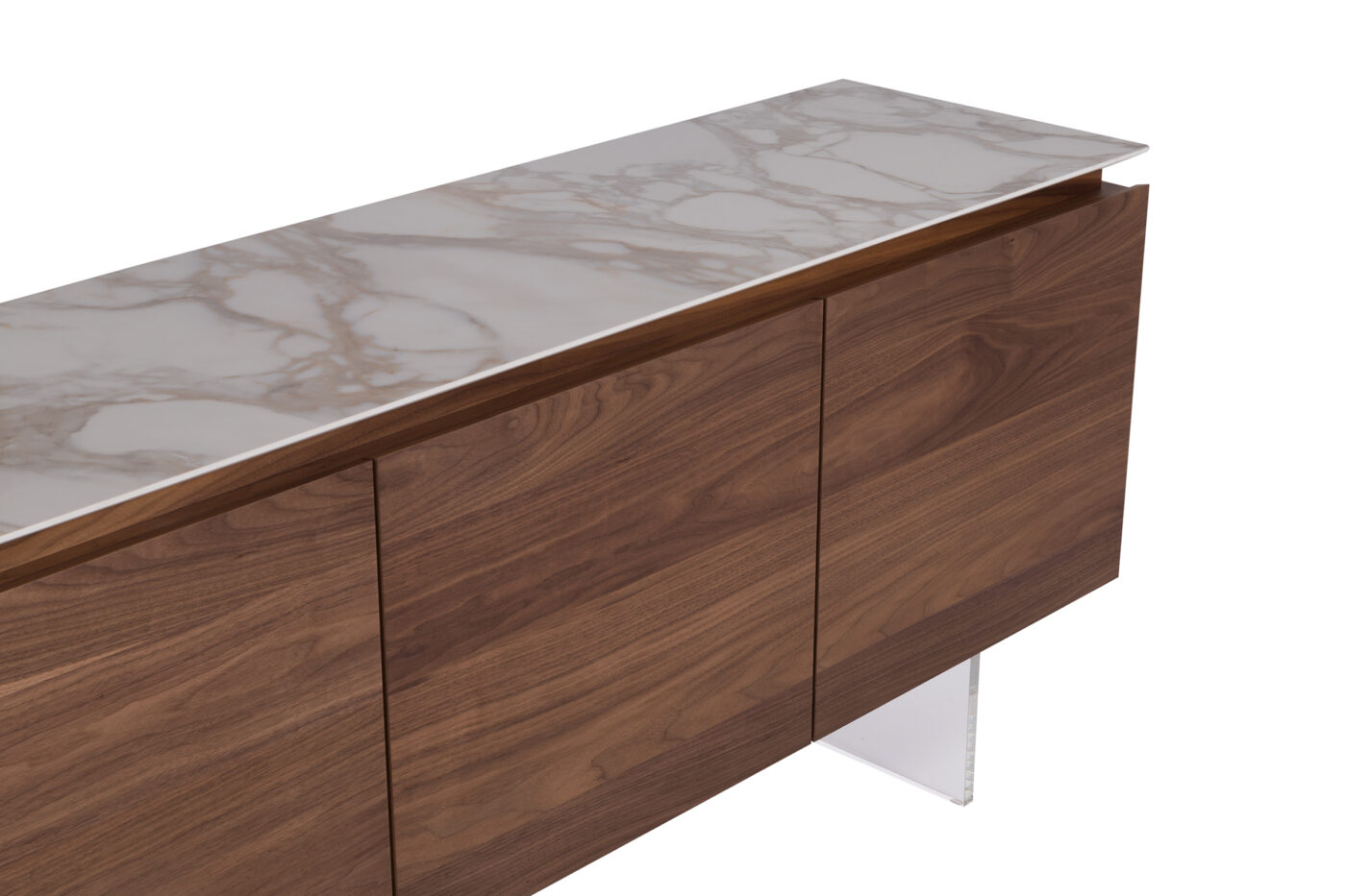 Μπουφές με σώμα καπλαμά ή λάκα , καπάκι κεραμικό maxfine και βάση plexi glass. Περιλαμβάνει 4 πόρτες .