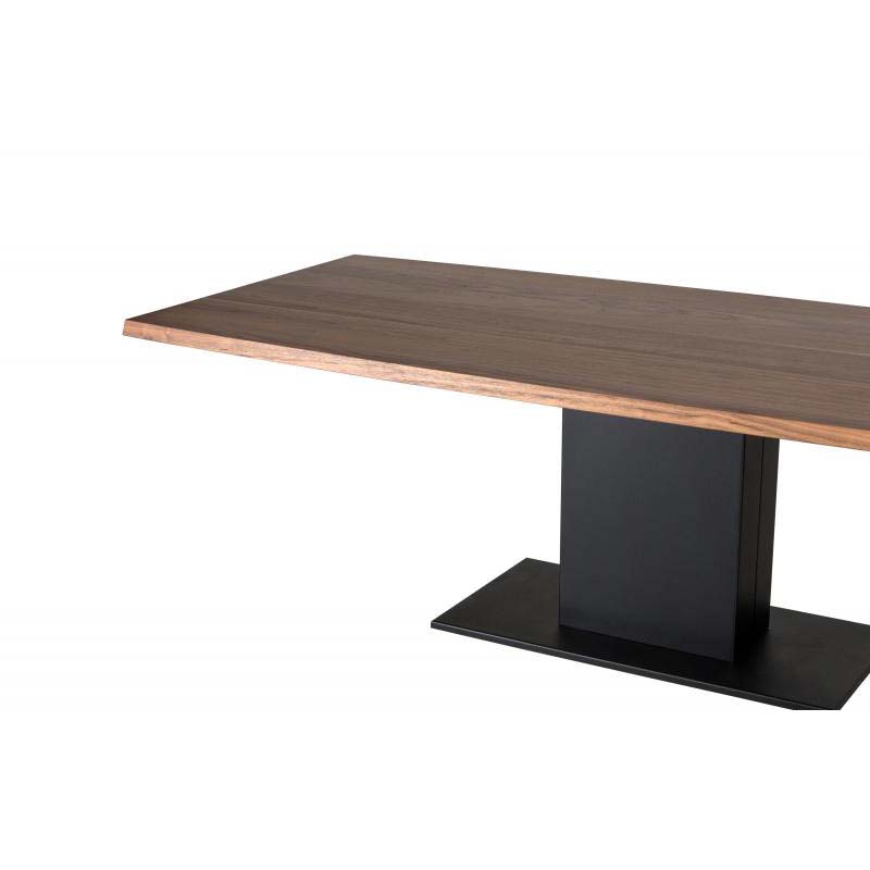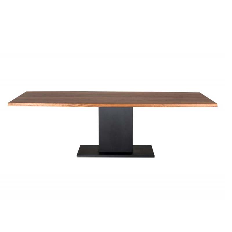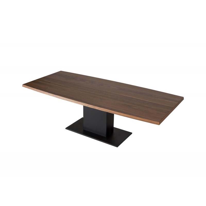 Τραπέζι με καμπύλο παραλληλόγραμμο καπάκι με 10 μοίρες φάλτσο από καπλαμά ξύλου ή λάκα ή μασίφ ξύλο και μεταλλική βάση.