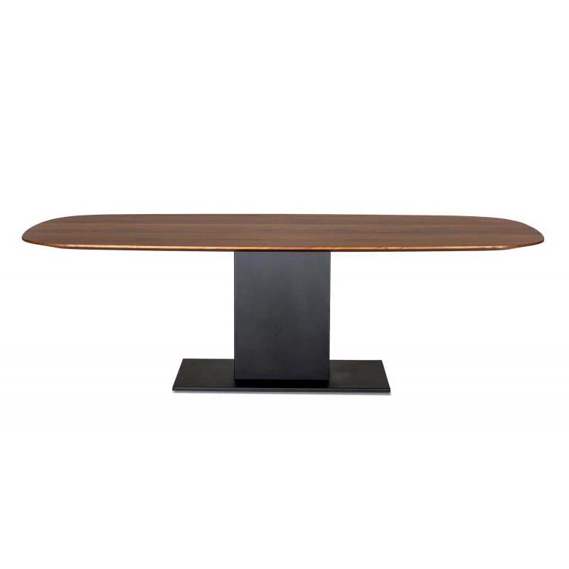 Τραπέζι με οβάλ φάλτσο καπάκι από καπλαμά ξύλου ή λάκα ή μασίφ ξύλο και μεταλλική βάση.