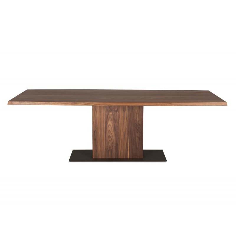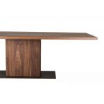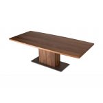 Τραπέζι με καμπύλο παραλληλόγραμμο καπάκι με 10 μοίρες φάλτσο από καπλαμά ξύλου ή λάκα και βάση από καπλαμά ξύλου ή λάκα με μεταλλική λεπτομέρεια.