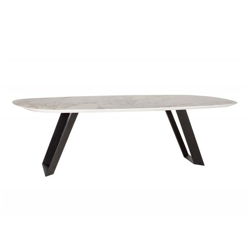 Τραπέζι με οβάλ φάλτσο καπάκι από κεραμικό maxfine και μεταλλική βάση.