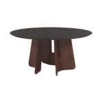 Τραπέζι με στρογγυλό φάλτσο καπάκι maxfine κεραμικό και ξύλινη βάση .