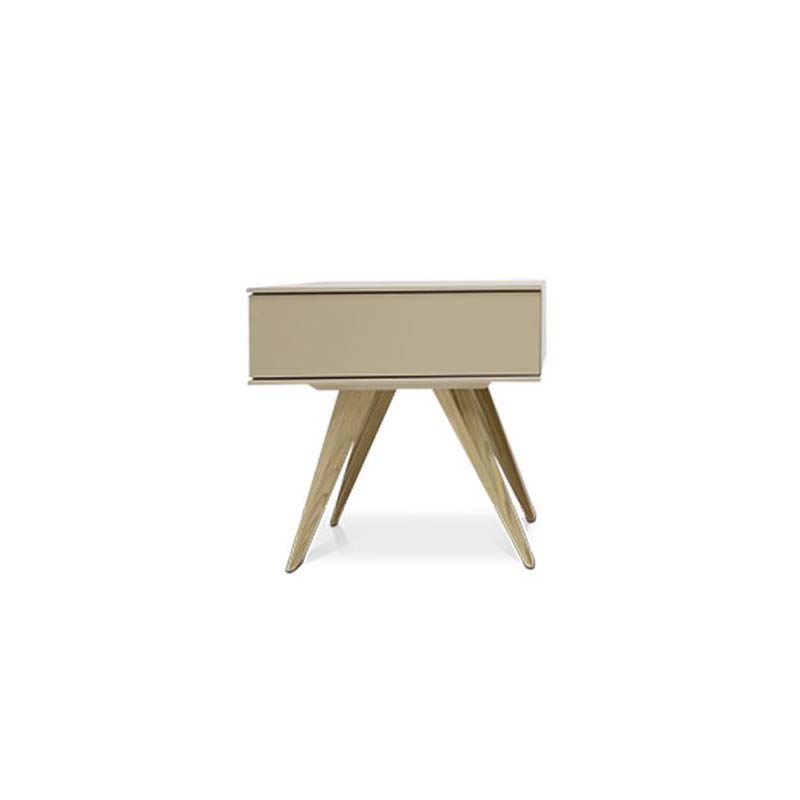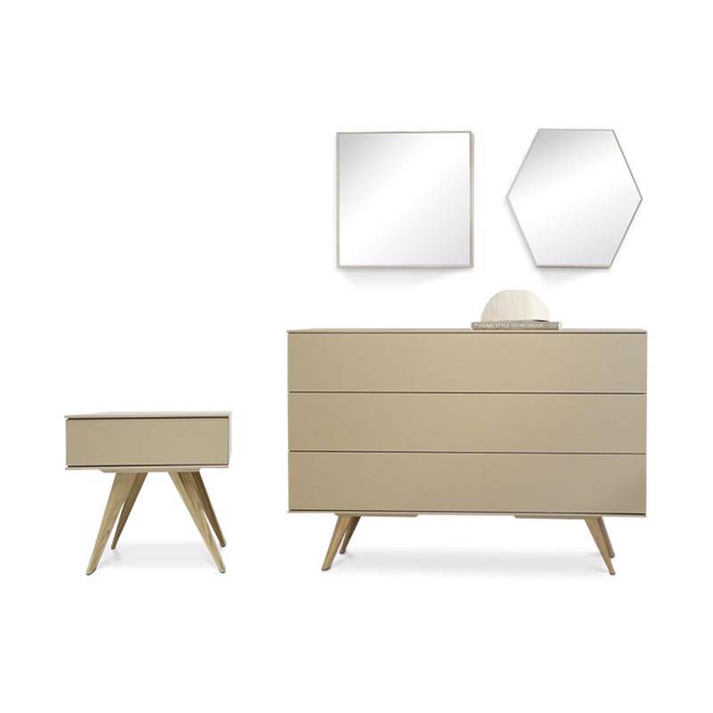Κομοδίνο και τουαλέτα με σώμα καπλαμά ξύλου ή λάκα και πόδια σε μασίφ ξύλο.