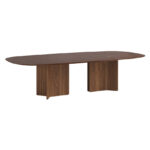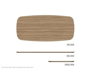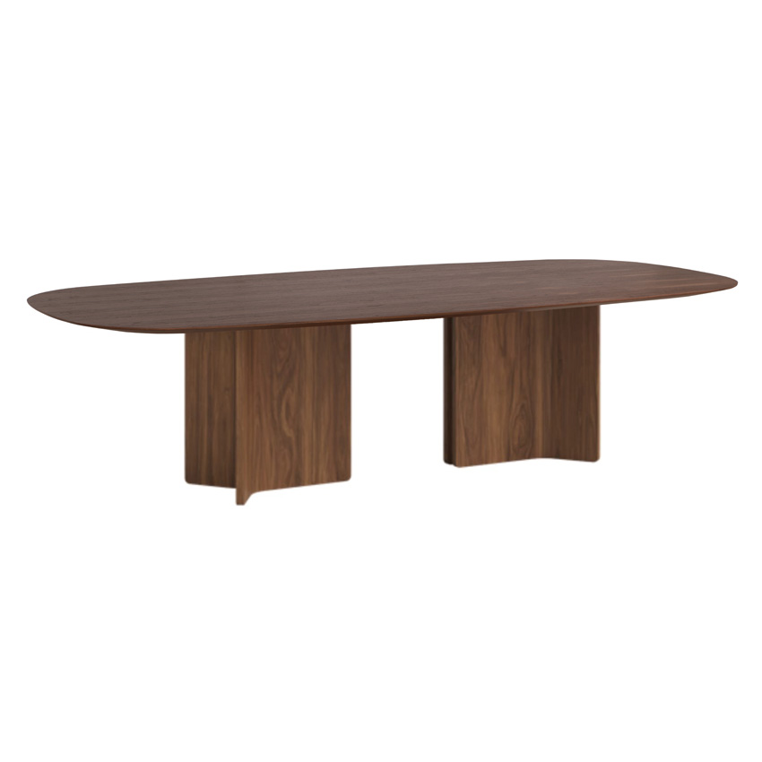 Τραπέζι με οβάλ καπάκι σε καπλαμά ή λάκα καπάκι και ξύλινη βάση .