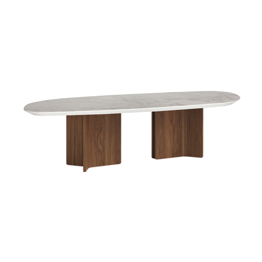 Τραπέζι με οβάλ κεραμικό maxfine καπάκι και ξύλινη βάση .