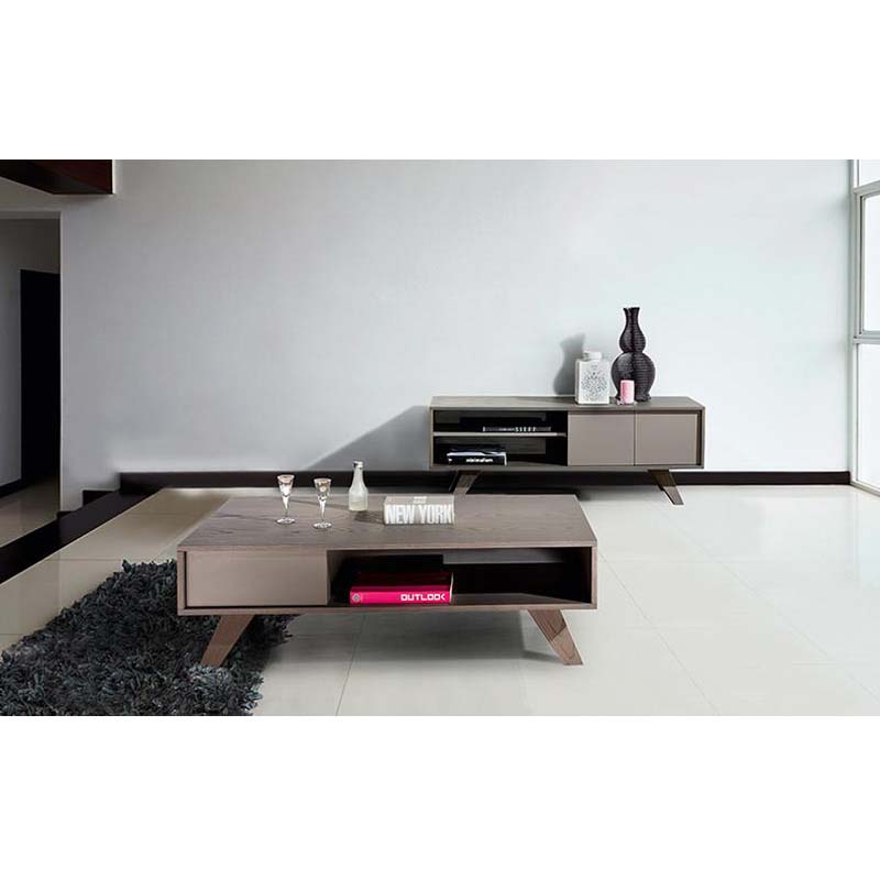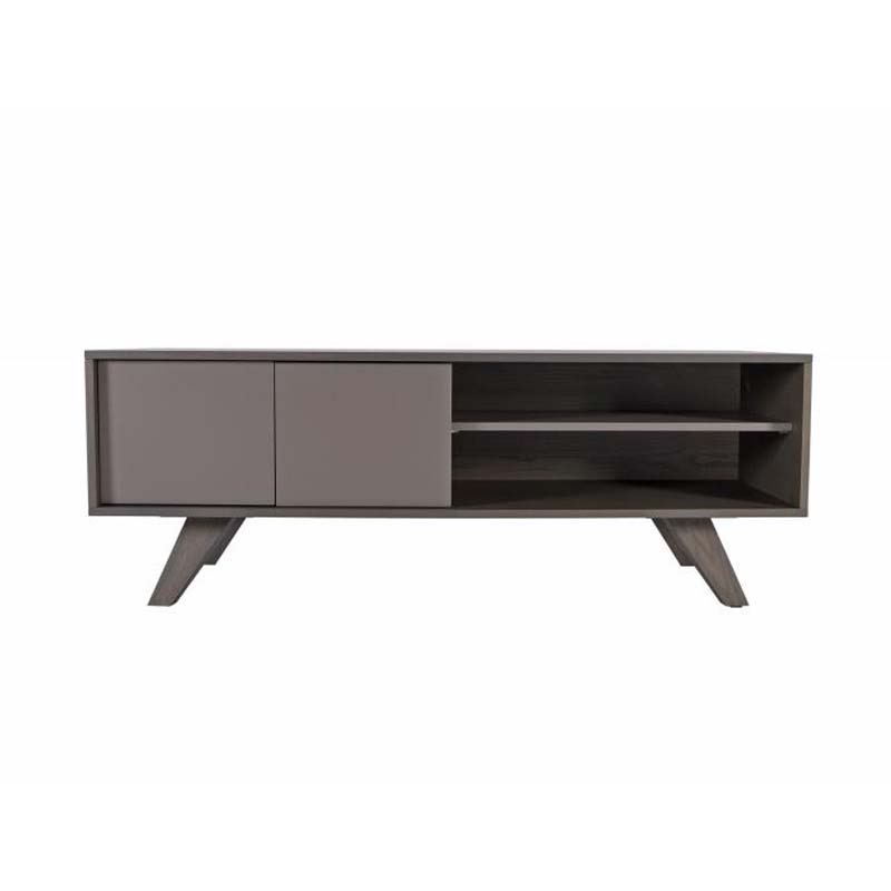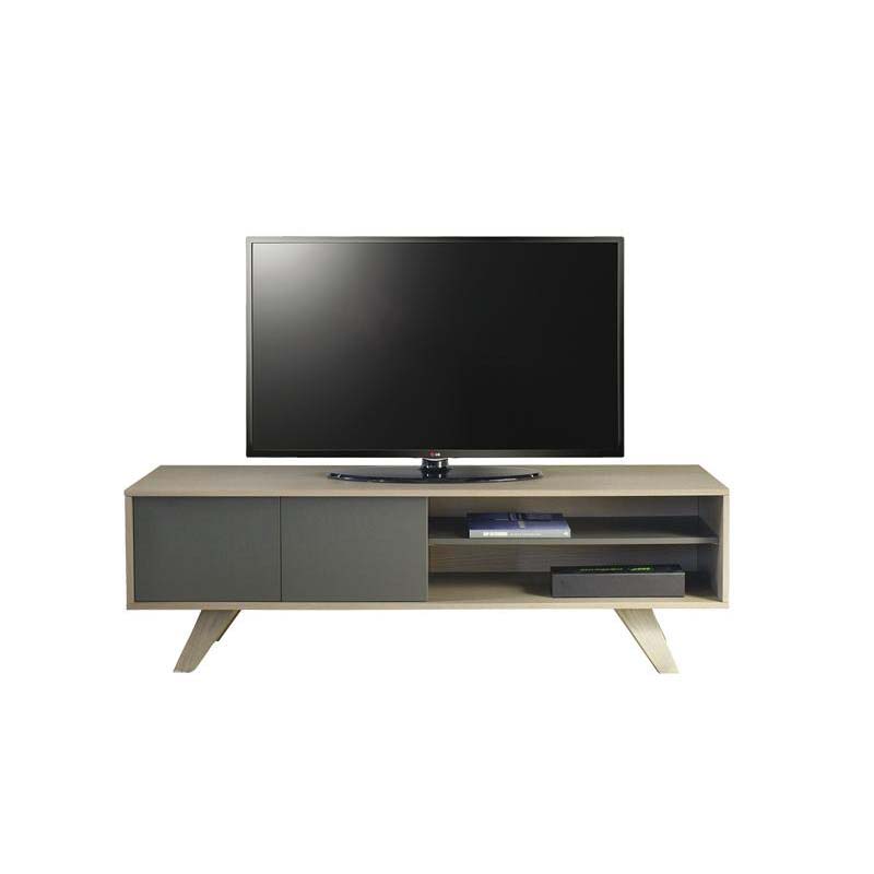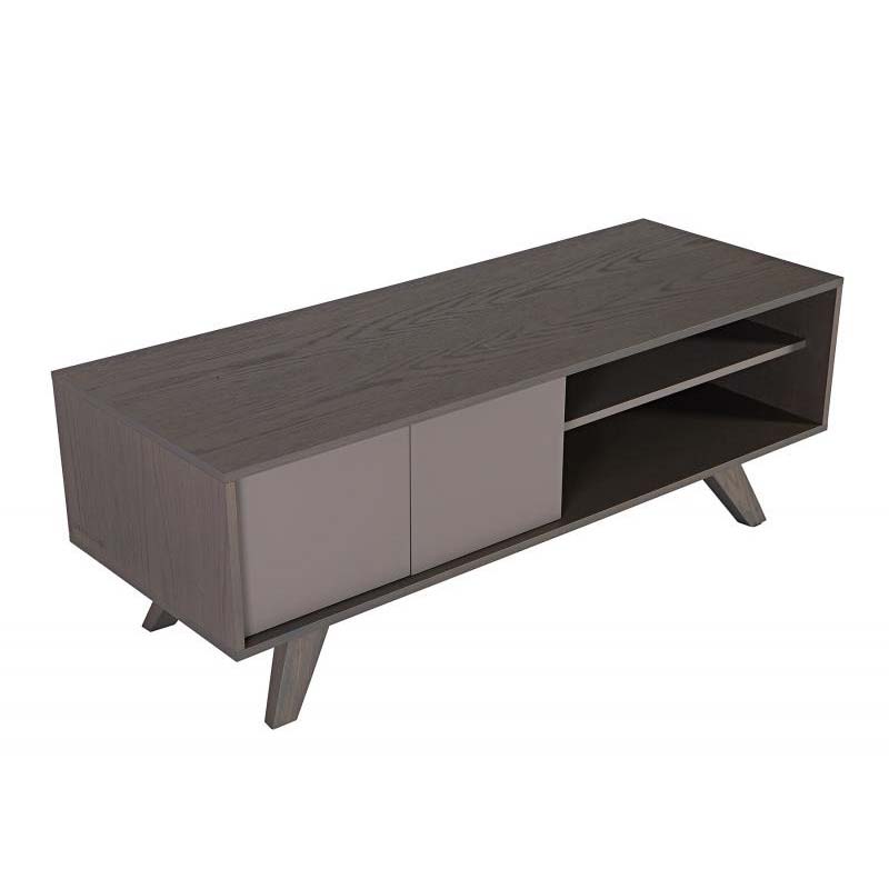 Έπιπλο tv με σώμα καπλαμά ή λάκα και βάση μασίφ ξύλο.