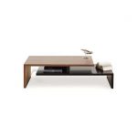 Τραπεζάκι σαλονιού με το πάνω μέρος σε καπλαμά ξύλου και το κάτω μέρος πάντα σε λάκα.